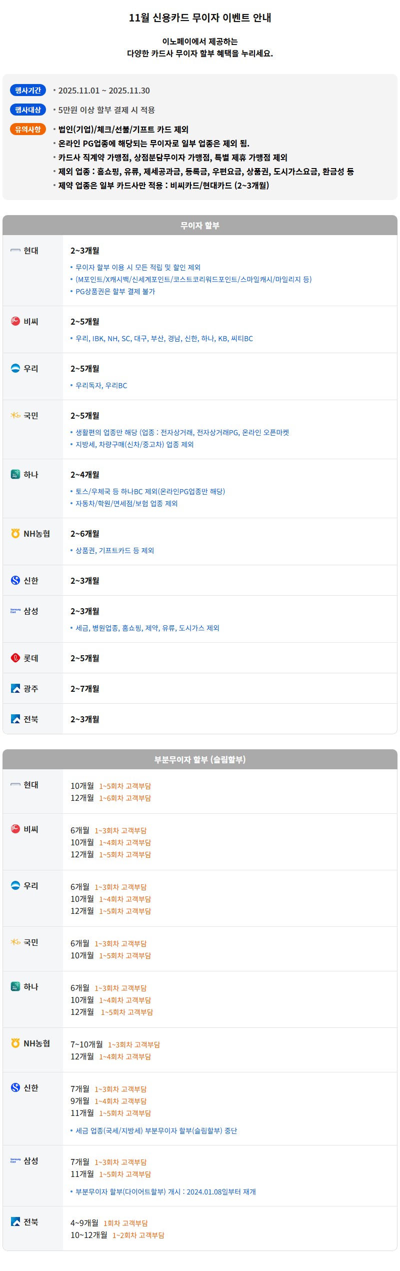 25년 11월 카드 (부분)무이자 할부