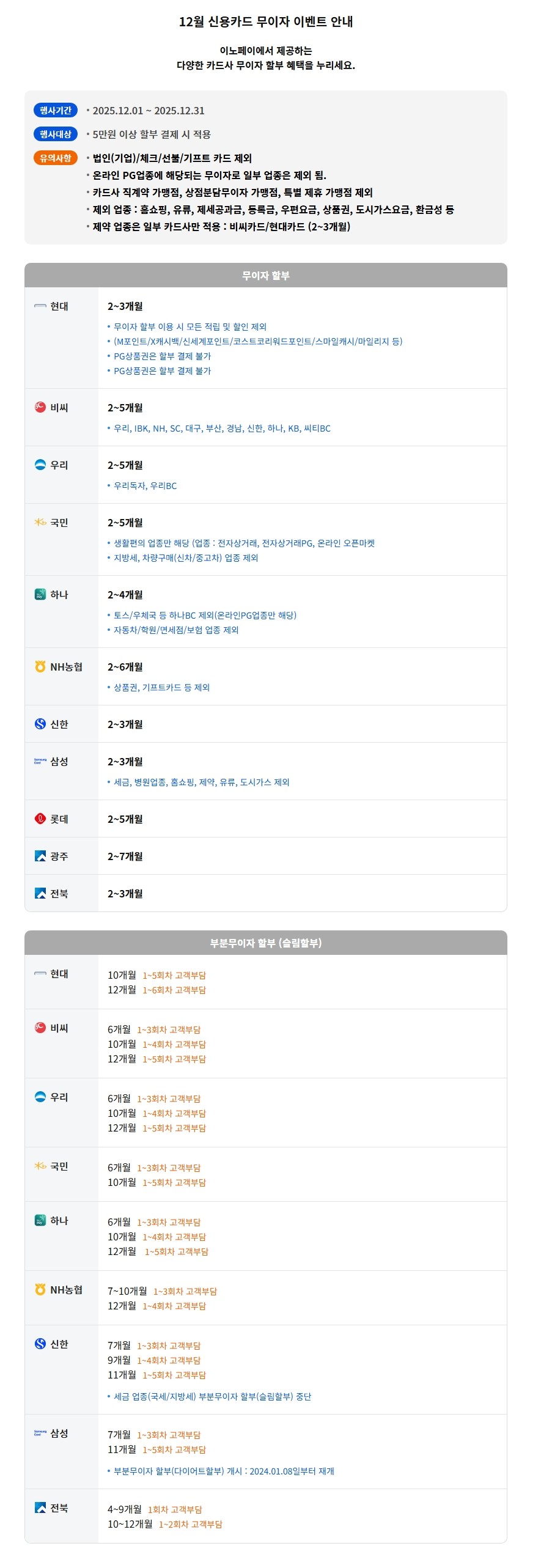 25년 12월 카드 (부분)무이자 할부